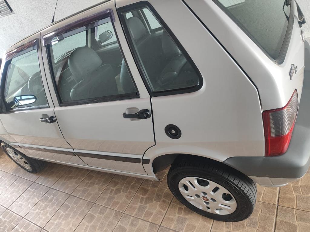 Fiat Uno 1.0 Flex Economy prata, impecável, sem detalhes, revisado e com garantia, alarme, som original, vidros elétricos, trava elétrica, limpador e desembaçador.