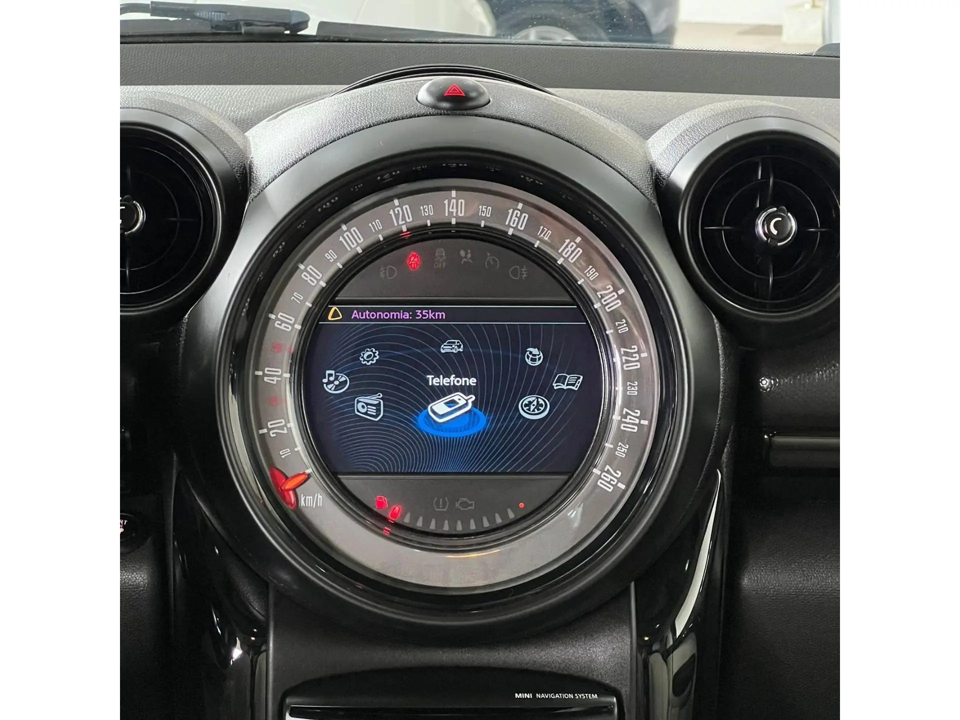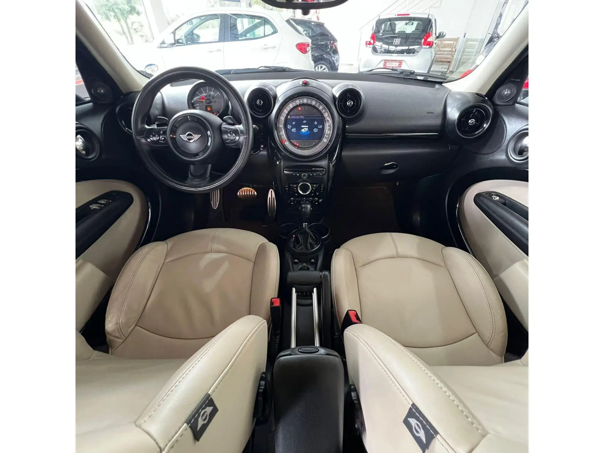 O interior segue o estilo icônico da marca, com acabamento caprichado, detalhes cromados, materiais de boa qualidade e ergonomia acolhedora. O painel central, com grandes mostradores e controles em estilo toggle switch, reforça a personalidade e o charme do modelo.