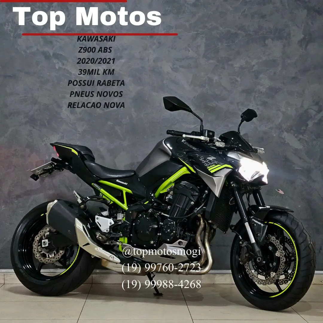 -20202021 -39mil km -manual e chave -rabeta original -pneus novos -relacao nova pegamos sua moto de menor ou maior valor no negocio! entre em contato e saiba mais sem compromisso. financiamos em ate 48x ou parcelamos no cartao em ate 21x! ? top motos mogi ? otavio: 19 99760-2723 ? rafael: 19 99988-4268 a z900 abs 2021 e uma supernaked com design sugomi, impulsionada por um motor de 948 cc de quatro cilindros em linha, entregando 125 cv de potencia. conta com um pacote eletronico completo, incluindo controle de tracao ktrc, modos de pilotagem sport, road, rain e rider, e iluminacao full led. ela combina potencia agressiva com agilidade, apresentando um chassi leve, embreagem assistida e painel tft colorido.