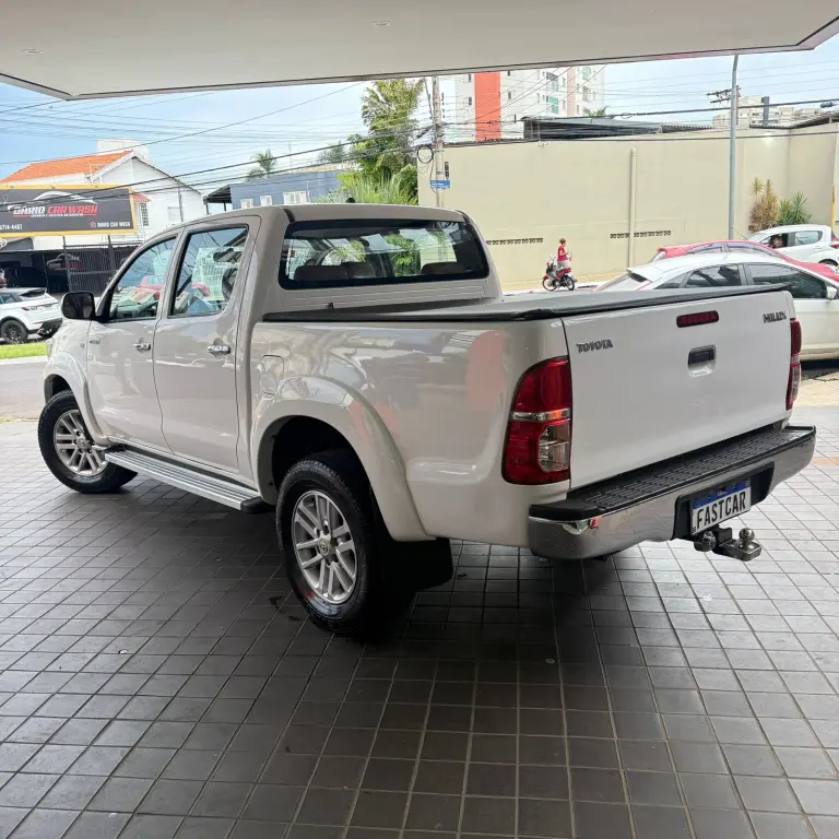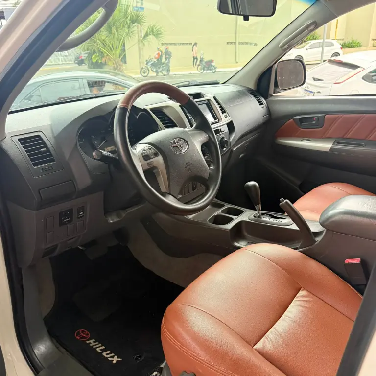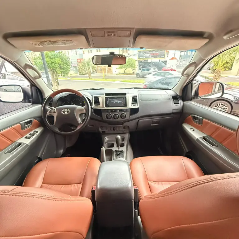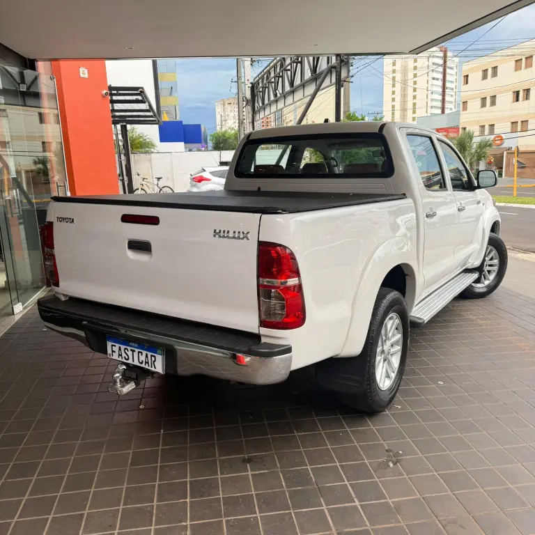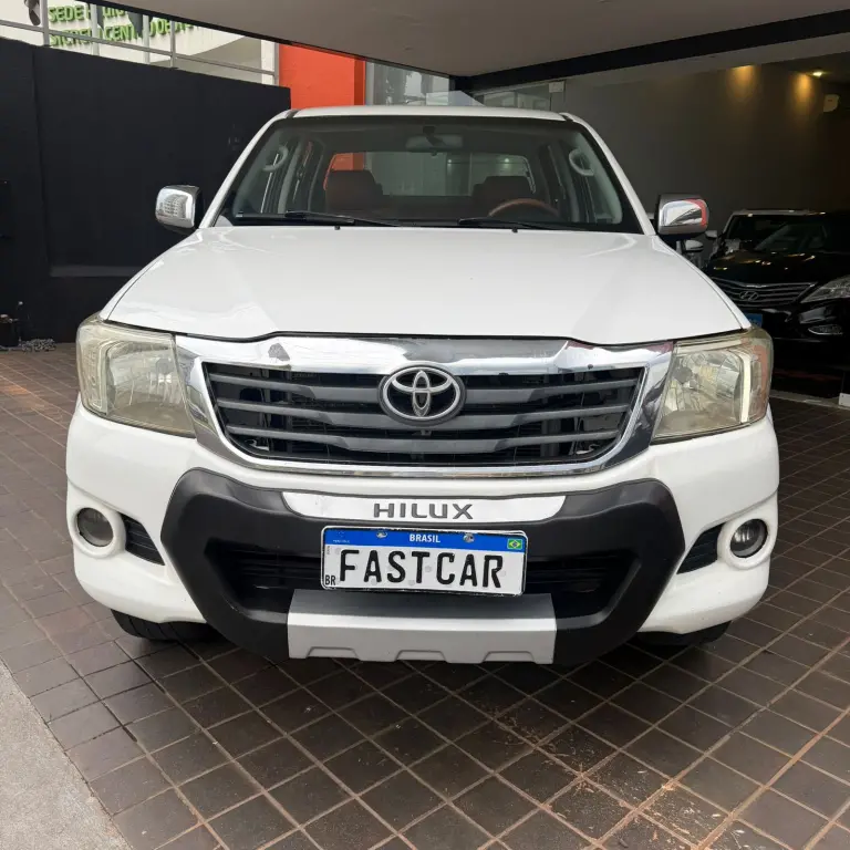 Toyota Hilux SR • 2013 • Motor 2.7 Flex • Câmbio automático • Direção hidráulica • Volante multifuncional • Ar condicionado • Vidros e travas elétricas • Tração 4x2 • Multimídia • Bancos de couro • Rodas de liga leve