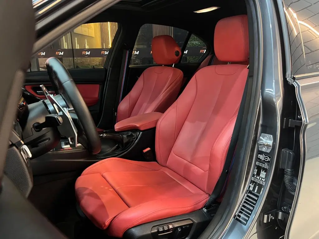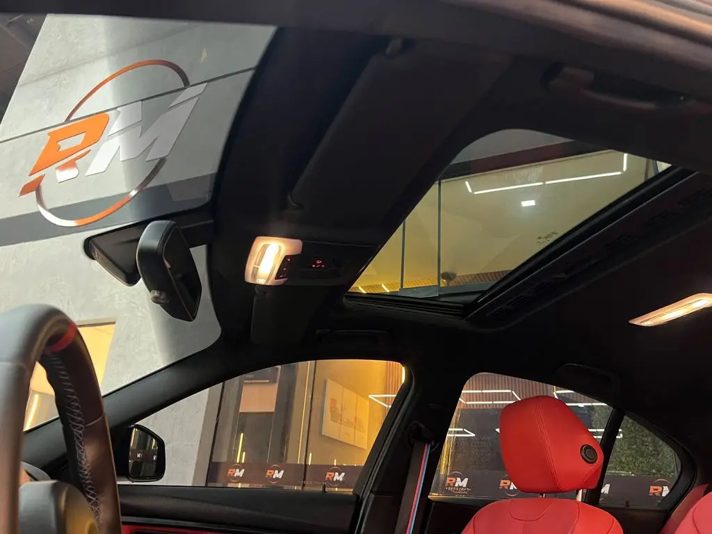Nos detalhes premium, o carro conta com luz de cortesia com projeção do logo BMW, chave presencial com case personalizada M3, vitrificação completa (pintura, rodas, lanternas, bancos e painel), insulfilm Window Blue, abertura e fechamento dos vidros, teto solar e rebatimento dos retrovisores pelo alarme. Interior com acabamento em alumínio escovado, rodas aro 18", teto interno preto, bancos em couro na cor preto dakota elétricos com ajuste de lombar e memória, som premium BMW Hi-Fi Alpine e toda a sensação de um verdadeiro cockpit esportivo.