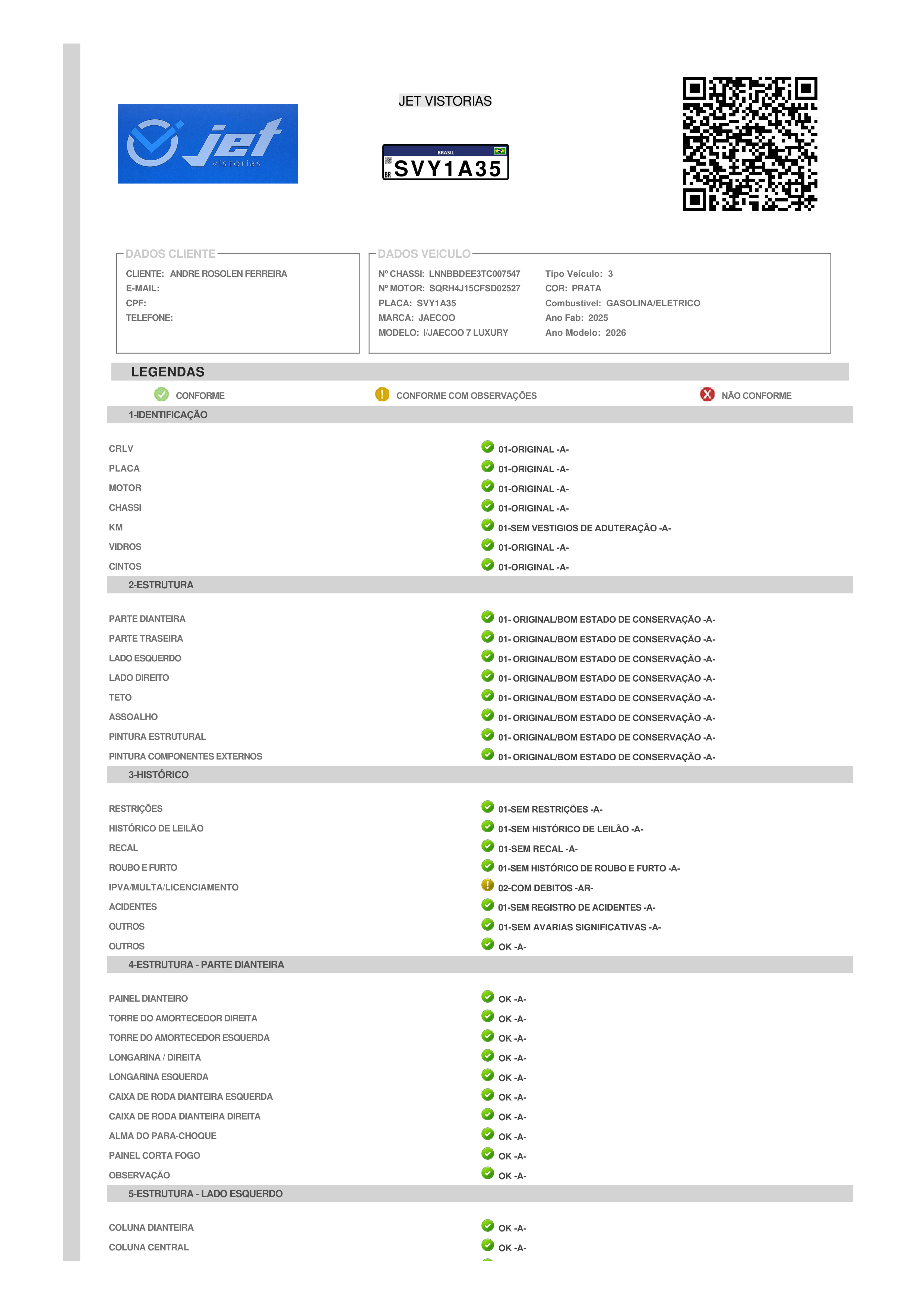 Dados do Veículo:
