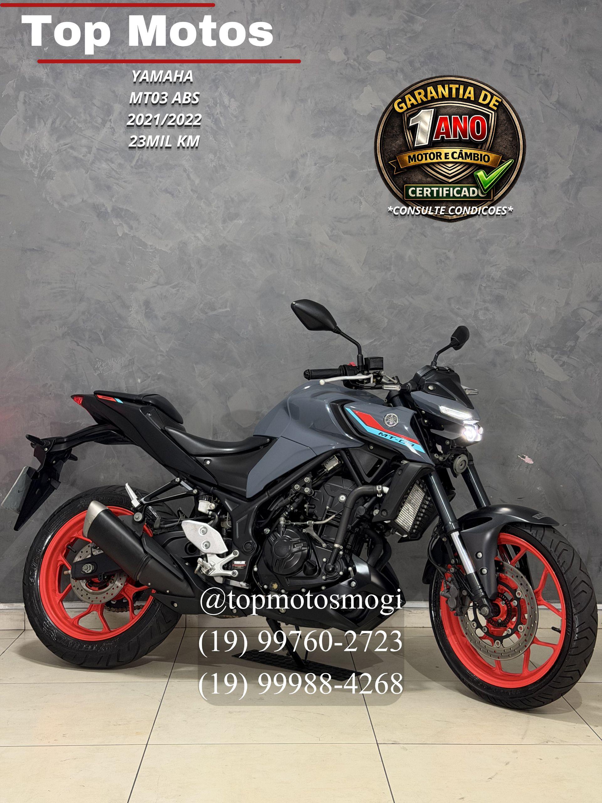 -20212022 -23mil km -garantia motor e cambio de 1 ano consulte condicoes -pegamos sua moto de menormaior valor em negocio!!entre em contato para melhores informacoes. -financiamento em ate 48x -cartao de credito em ate 21xmediante cotacao, solicite uma simulacao sem compromisso!! ? top motos mogi ? otavio: 19 99760-2723 ? rafael: 19 99988-4268 mt03 2022 motor 321 cc bicilindrico com cerca de 42 cv, giro alto e desempenho agil na cidade e estrada. visual naked agressivo da linha mt, farol em led, painel digital e ciclistica leve com pegada esportiva. ??